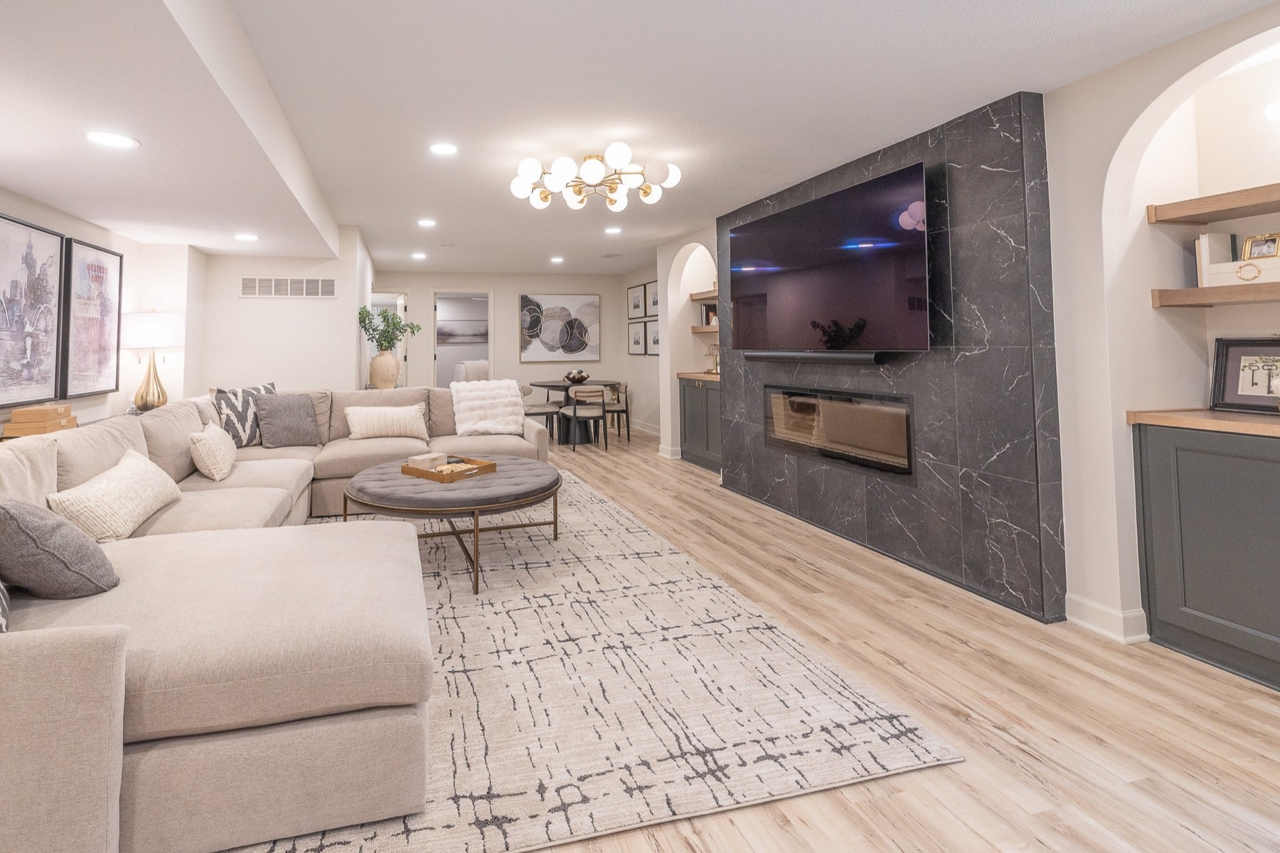 Every detail of this Olathe basement renovation was carefully considered to deliver a cohesive, high-end result. The finished space feels bright, comfortable, and seamlessly connected to the rest of the home while adding meaningful livable square footage and long-term value.