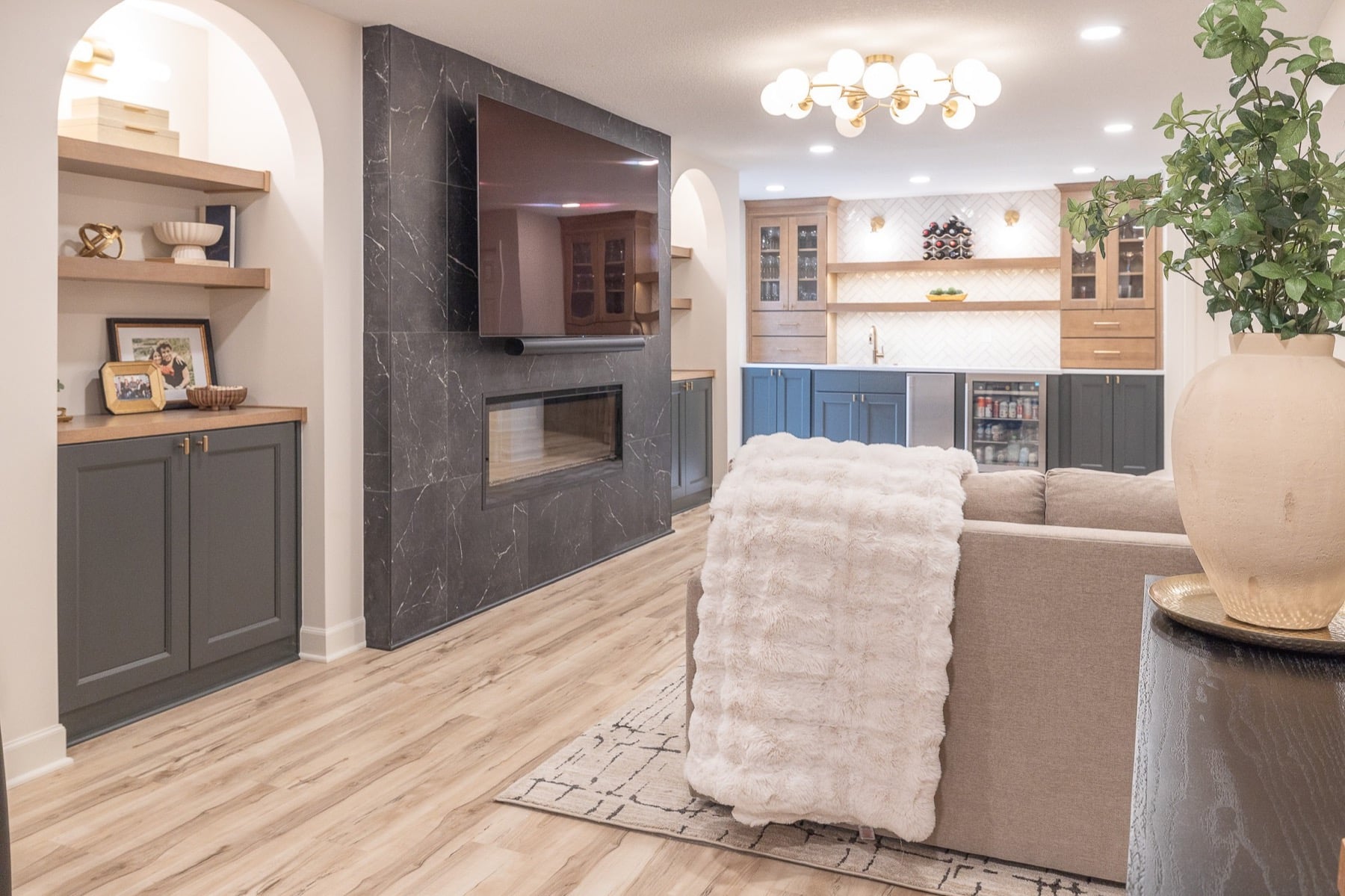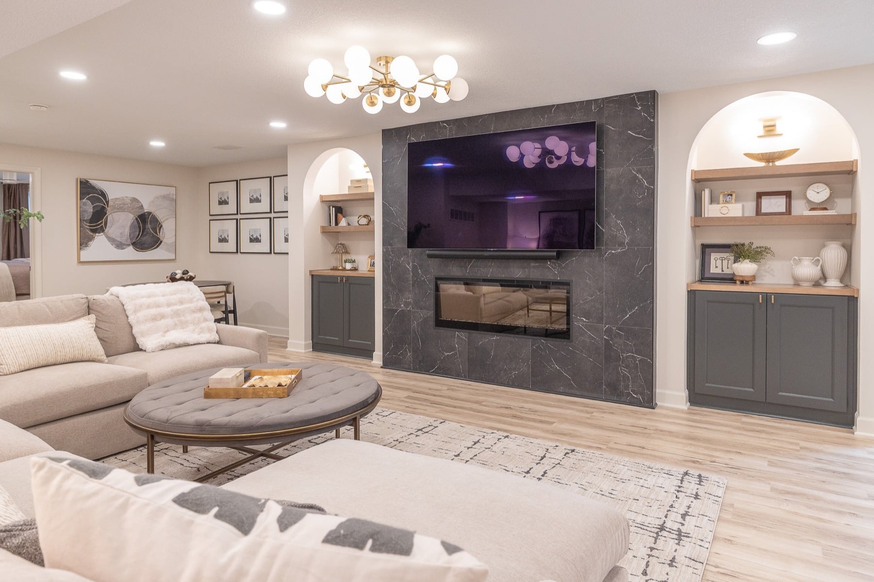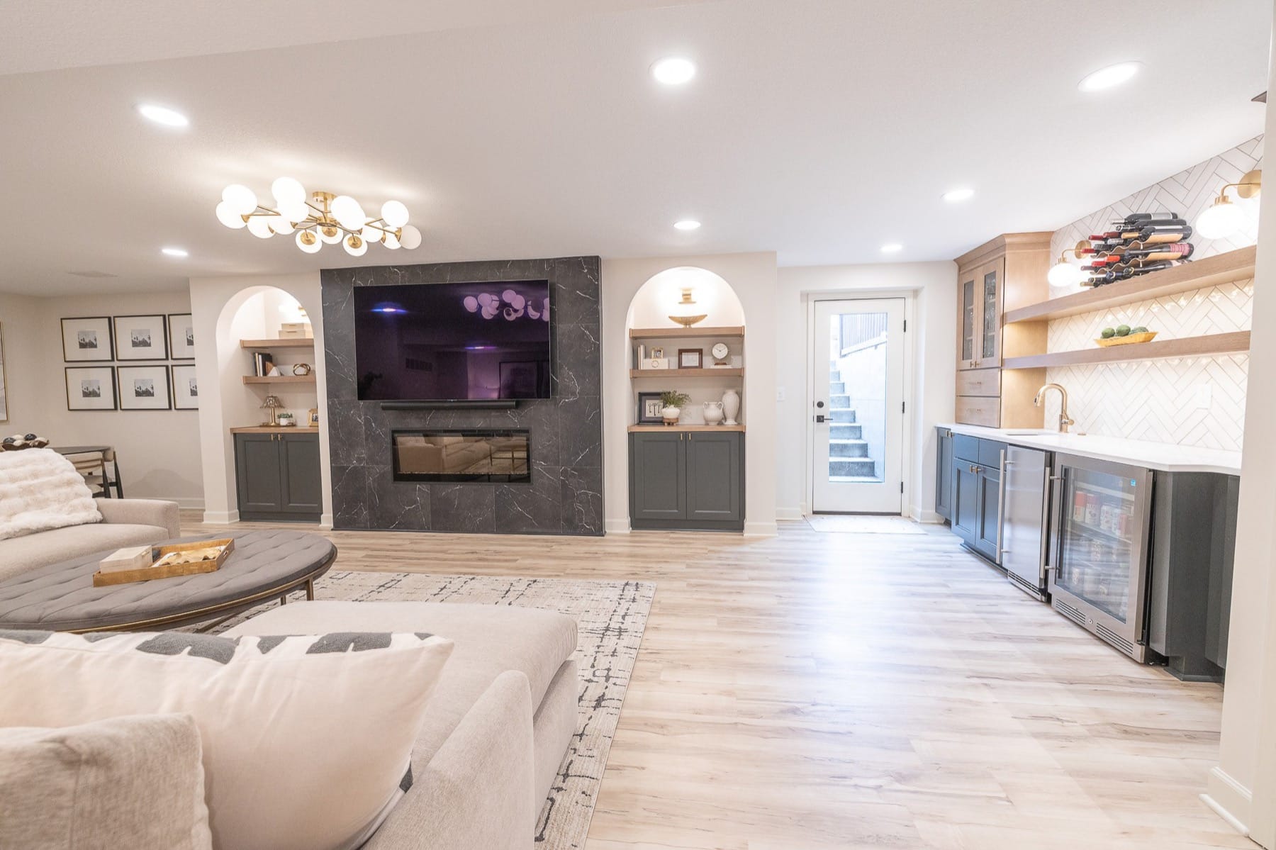 This luxury basement remodel in Olathe, KS transforms a lower level into a refined and fully integrated extension of the home. Designed with intention and crafted with precision, the space blends warmth, texture, and functionality to create an environment that feels elevated and inviting.